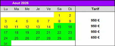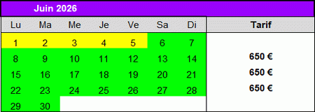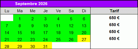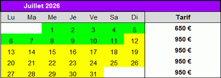 Périodes disponibles et tarif de location de votre gite à Sainte Croix du verdon